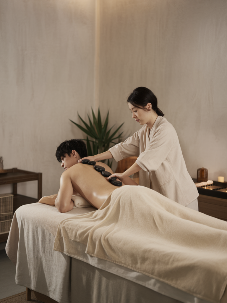 Experience the ultimate in relaxation with our Hot Stone Massage, a luxurious treatment that uses smooth, heated stones to release tension, ease muscle stiffness, and improve circulation. The warmth of the stones combined with expert massage techniques provides deep relaxation and a rejuvenating experience for your body and mind.
